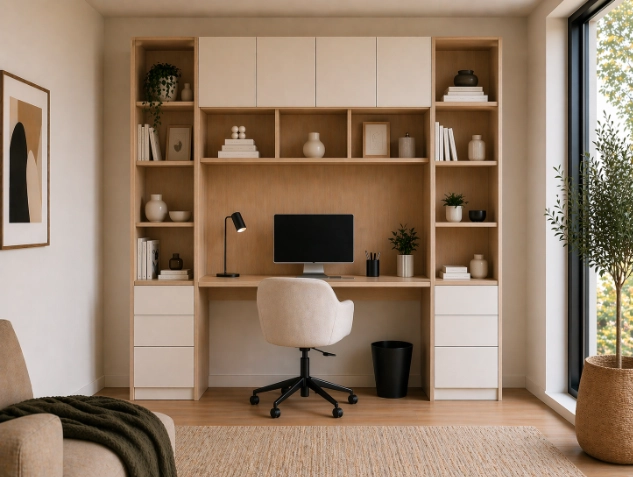 Pendant longtemps, le bureau était une pièce à part entière, isolée du reste de la maison. Aujourd'hui, il s'invite dans les espaces de vie. Le salon devient un salon avec bureau, la chambre accueille un coin de travail discret, et les petits espaces doivent souvent cumuler toutes les fonctions.